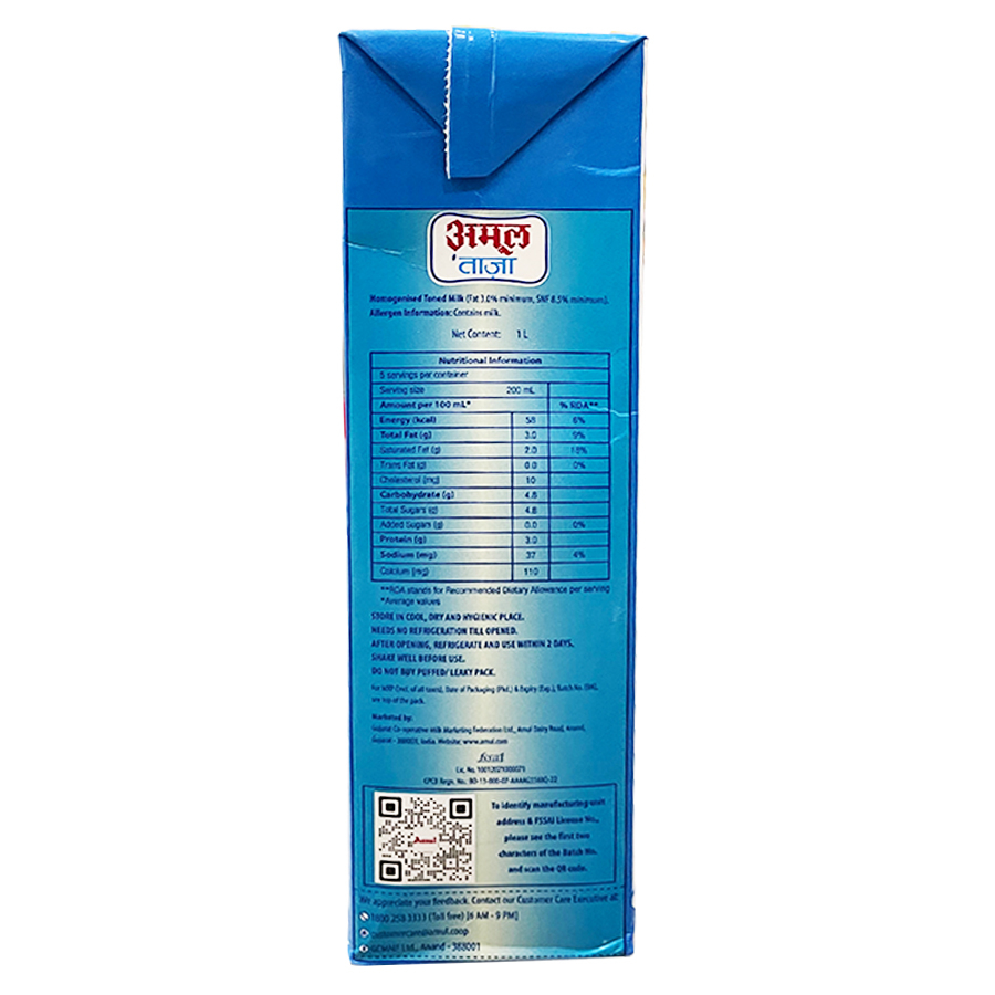 AMUL TAZA MILK 1 LTR TETRA PACK