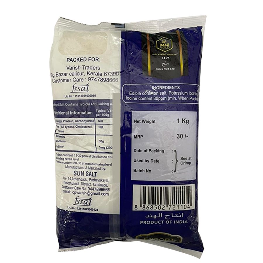 IMAX GOLD IODIZED CRYSTAL SALT 1 KG