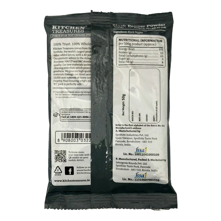 KITCHEN TREASURES BLACK PEPPER POWDER 50G