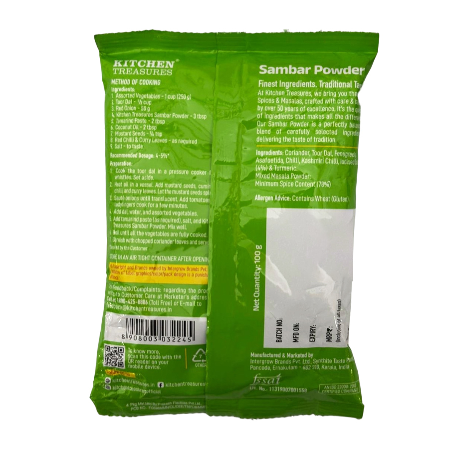 KITCHEN TREASURES SAMBAR POWDER 100G